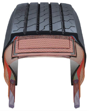 The rim cushion compound is highly resistant to the heat brought by the heavy load or transmitted by the rim so as to extend the tyre life.
